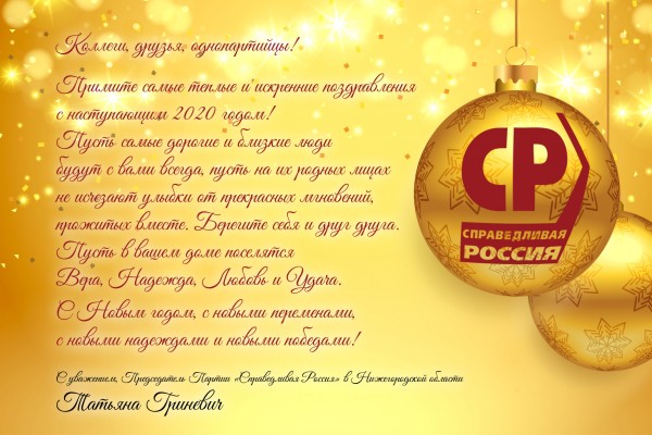 Новогоднее поздравление Председателя НРО СПРАВЕДЛИВАЯ РОССИЯ Татьяны Гриневич.