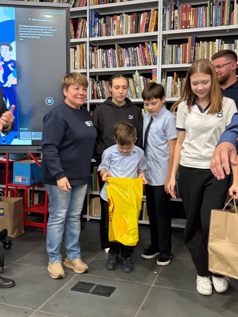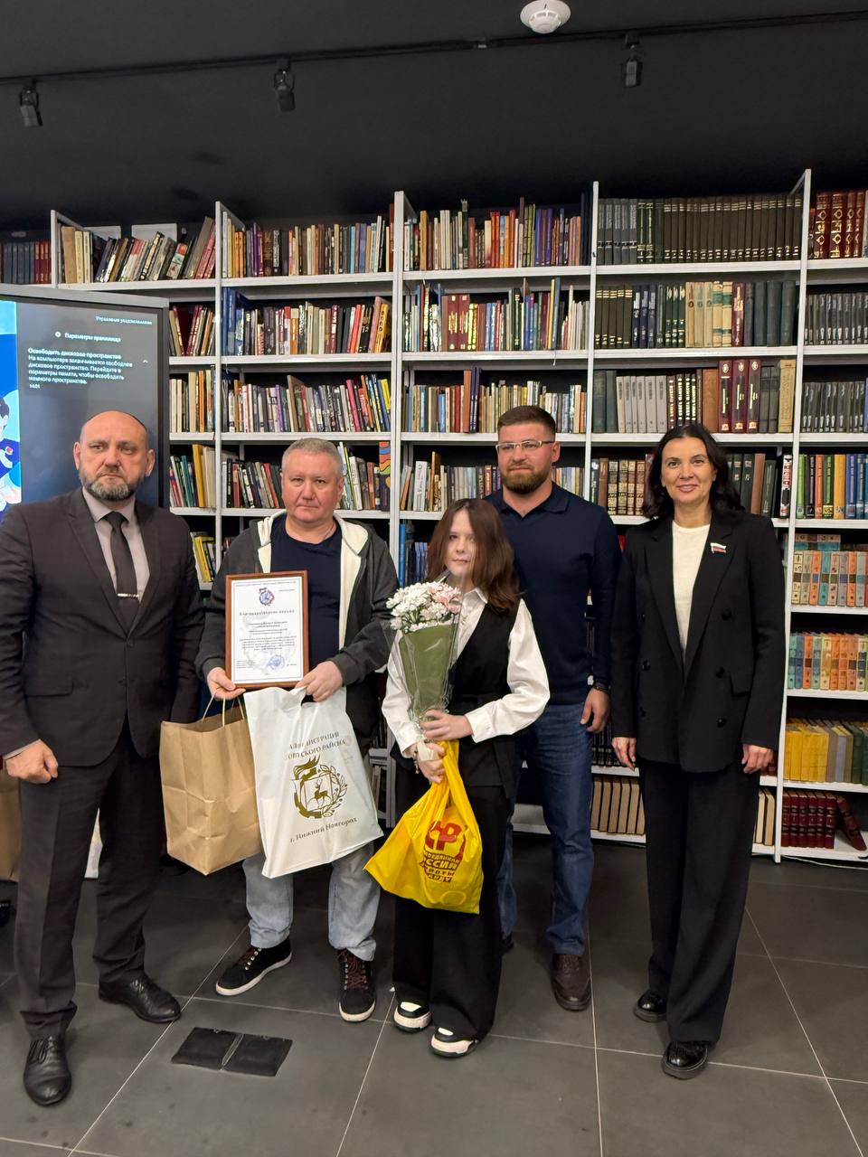 В библиотеке им. Михаила Светлова Татьяна Гриневич, Председатель Нижегородского регионального отделения Партии, совместно с администрацией Советского района г. Нижнего Новгорода поздравила многодетные семьи с праздником и подарила сладкие подарки.