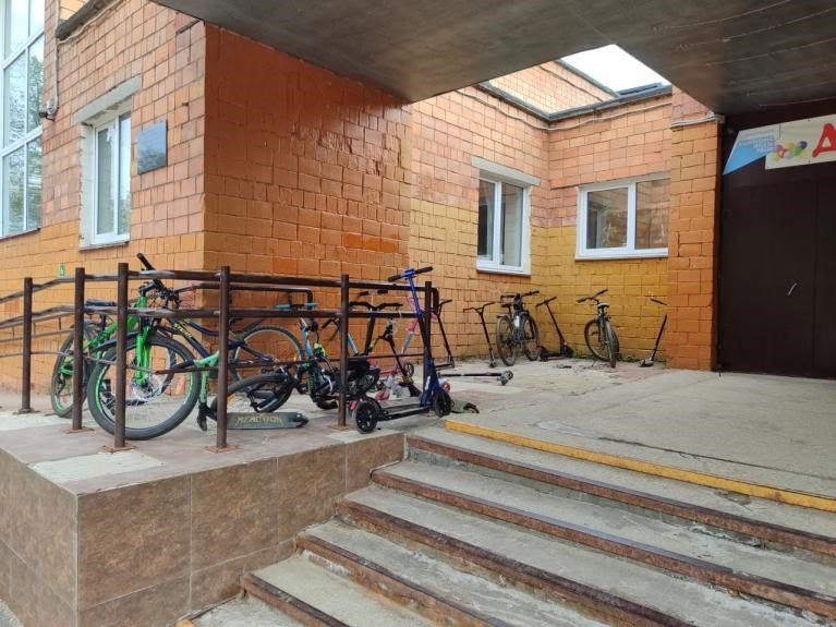 "Ребята заявились на конкурс не с проектом, а чтобы решить конкретную проблему. Как видите на фото "До" самокаты и велосипеды ребят занимали большое пространство на крыльце школы. Крепить их в другое место? Некуда. Поэтому оставляли на крыльце.