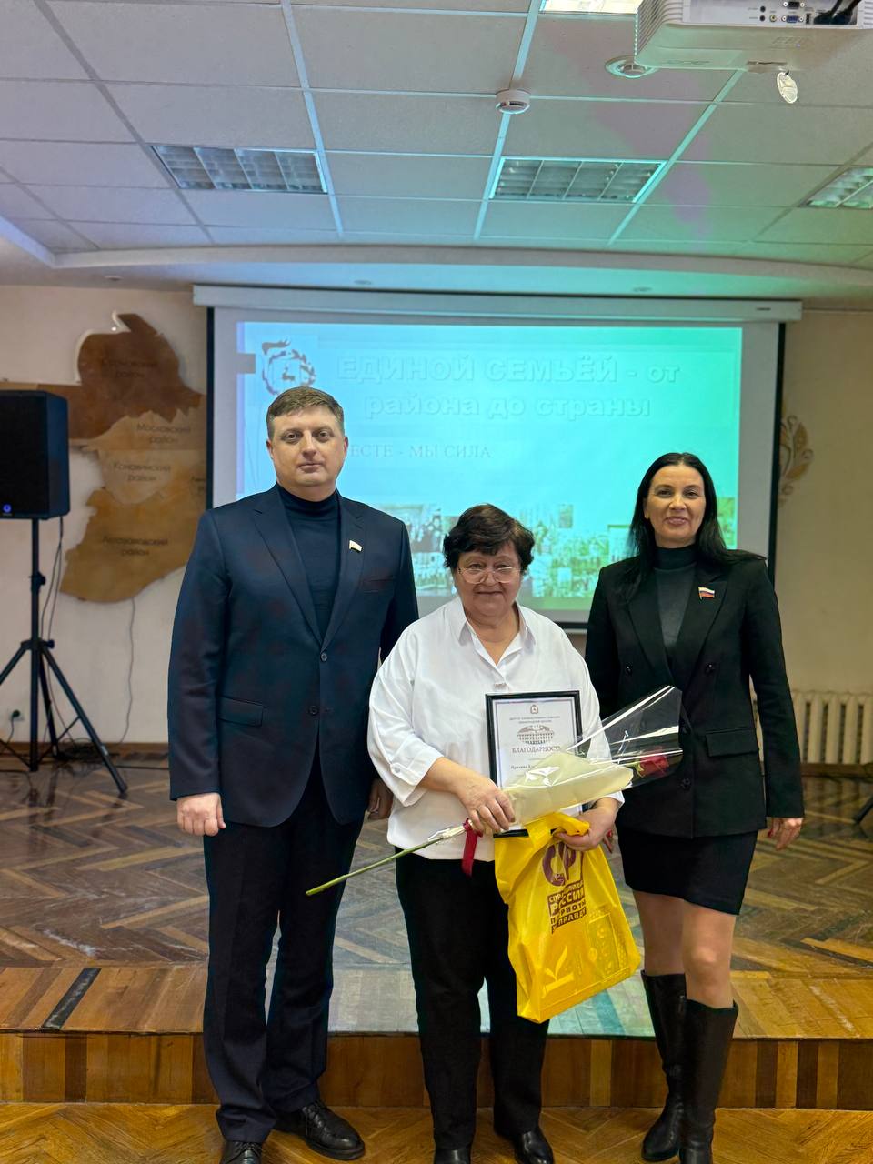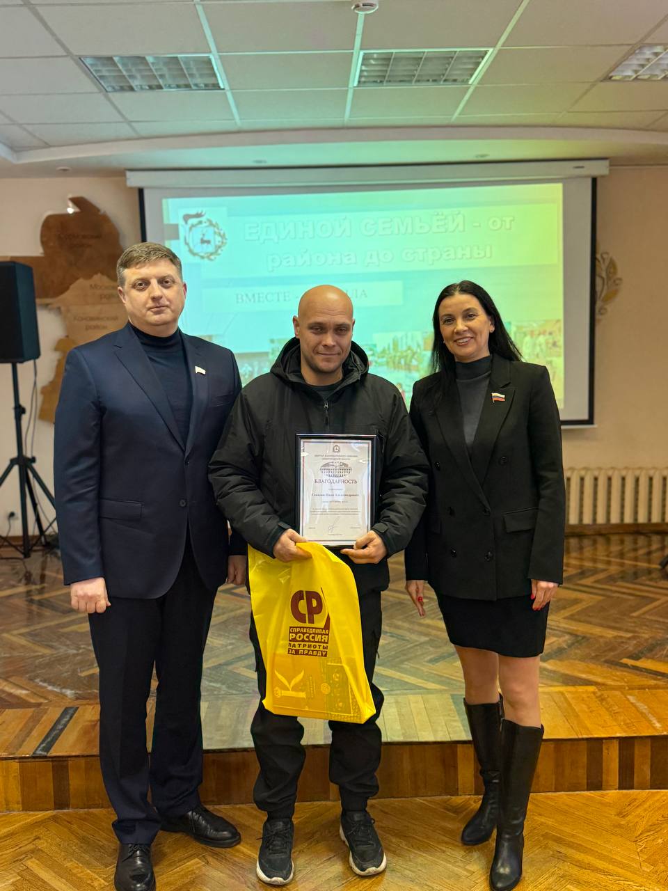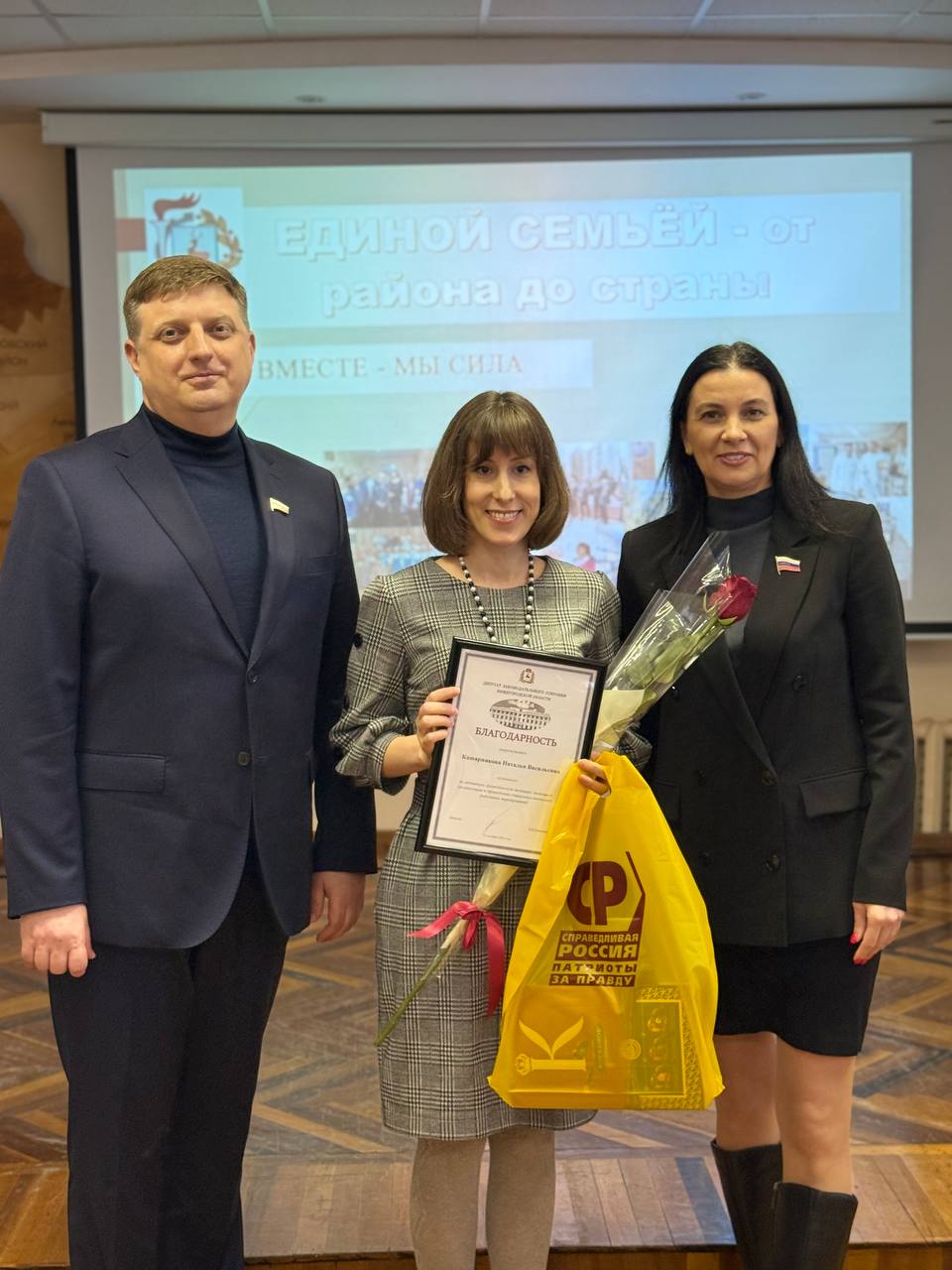 Татьяна Гриневич,Председатель Совета Нижегородского регионального отделения Партии СПРАВЕДЛИВАЯ РОССИЯ, депутат Законодательного Собрания Нижегородской области, и Алексей Кожухов, депутат городской Думы г.Нижнего Новгорода, наградили нижегородцев, внесших значительный вклад в развитие города, в преддверии празднования Дня народного единства в Администрации Советского района г.Нижнего Новгорода.