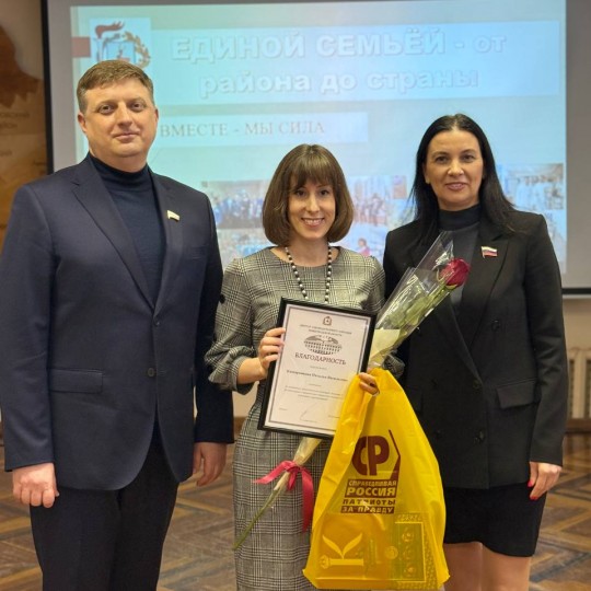 "Сегодня с Алексеем Кожуховым поздравили тех людей, на ежедневном труде которых держится благополучие нашего района. Педагоги, медицинские работники, сотрудники коммунальных служб, инженеры – все те профессии, труд которых помогает нам жить и работать комфортно. Вручила им Благодарности депутата Законодательного Собрания за многолетний и добросовестный труд, профессионализм и большой вклад в развитие нашего родного Советского района.