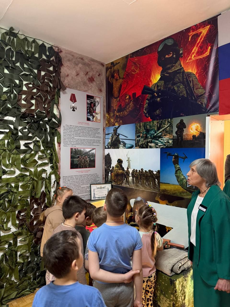 Ребята из старшей группы провели представителям партии СПРАВЕДЛИВАЯ РОССИЯ экскурсию и рассказали о подвигах Василия Иванова в годы Великой Отечественной войны, а также о воспитаннике этого садика, который погиб на СВО. Садик выиграл в конкурсе #Гриневичпомогает! оборудование для кинозала своего музея: проектор, ноутбук и проекционный экран. Именно в этом маленьком зале ребята смотрят фильмы и мультфильмы о памяти героев.