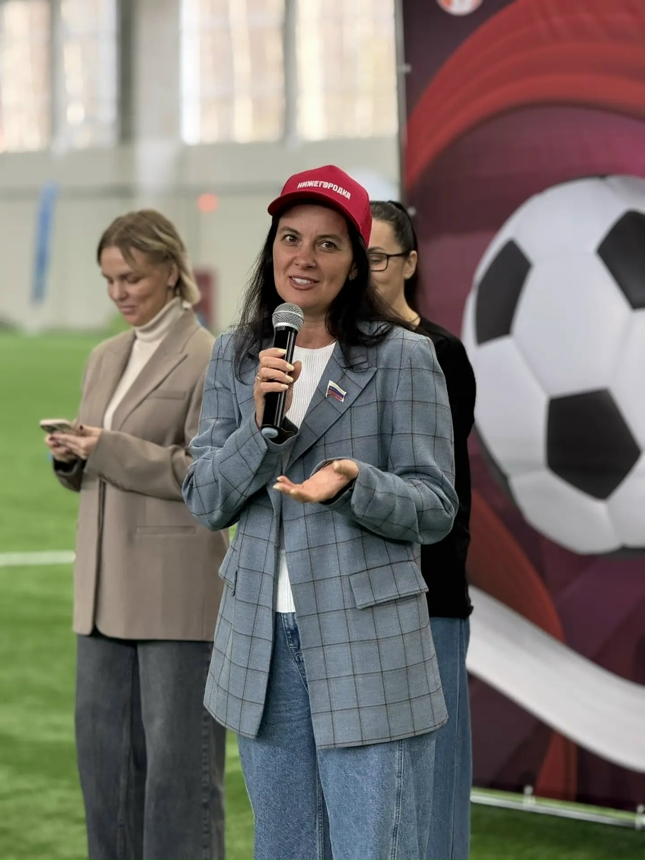 Татьяна Гриневич, лидер регионального отделения партии СПРАВЕДЛИВАЯ РОССИЯ в Нижегородской области, месте с Екатериной Париловой, заместителем министра спорта, и Алиной Горшуновой, директором Центра спортивного воспитания, открыли региональный чемпионат по футболу среди женских любительских команд, ещё известный под кодовым названием "Футбольные мамы".