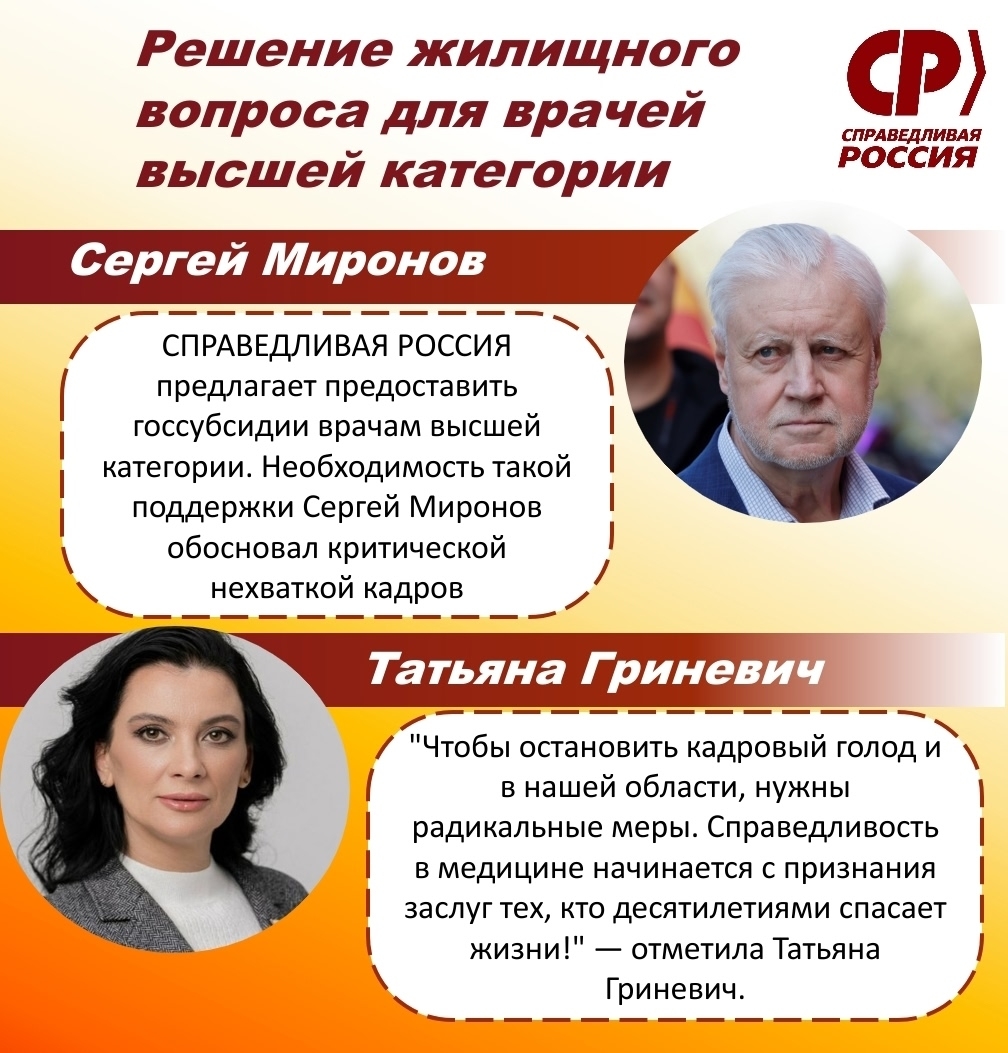 В документе предлагается обеспечить врачей высшей категории, работающих в бюджетной сфере (от муниципального до федерального уровней), единовременными субсидиями на жилье. Необходимость такой поддержки Сергей Миронов обосновал критической нехваткой кадров: по сведениям профильного министерства, в конце февраля 2025 года дефицит врачебного персонала в стране оценивался в 23,3 тысячи человек.