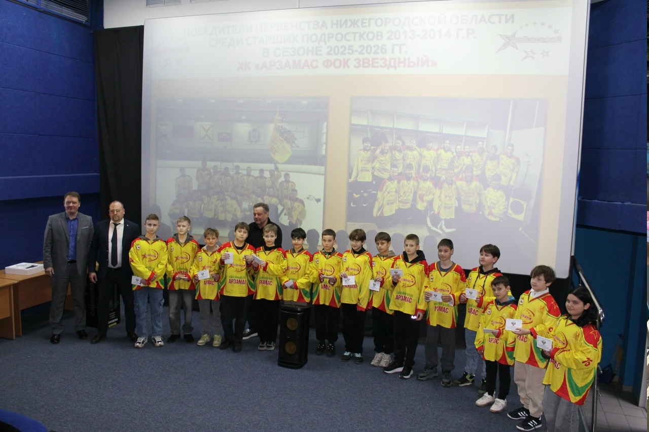 Хоккейная команда "Арзамас 13-14" (ФОК "Звёздный") завоевала золото в первенстве Нижегородской области среди старших подростков. К этой уверенной победе спортсмены и их наставник А. В. Филиппов шли на протяжении всего сезона.